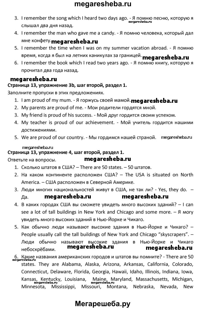 ГДЗ по английскому языку 8 класс Афанасьева новый курс (4-ый год обучения) решение к разделу: страница - 13
