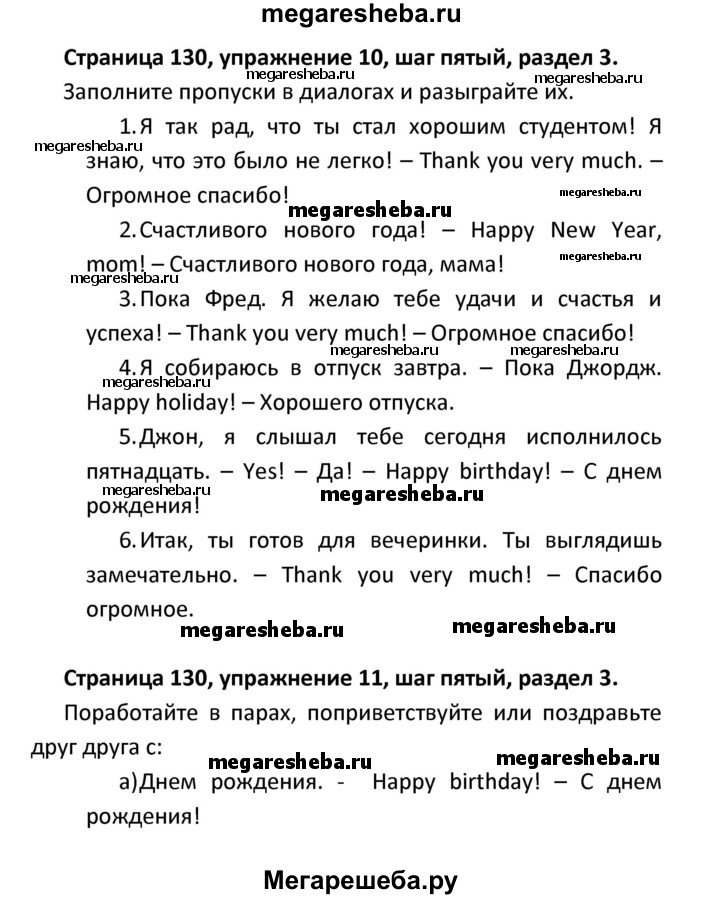 ГДЗ по английскому языку 8 класс Афанасьева новый курс (4-ый год обучения) решение к разделу: страница - 130