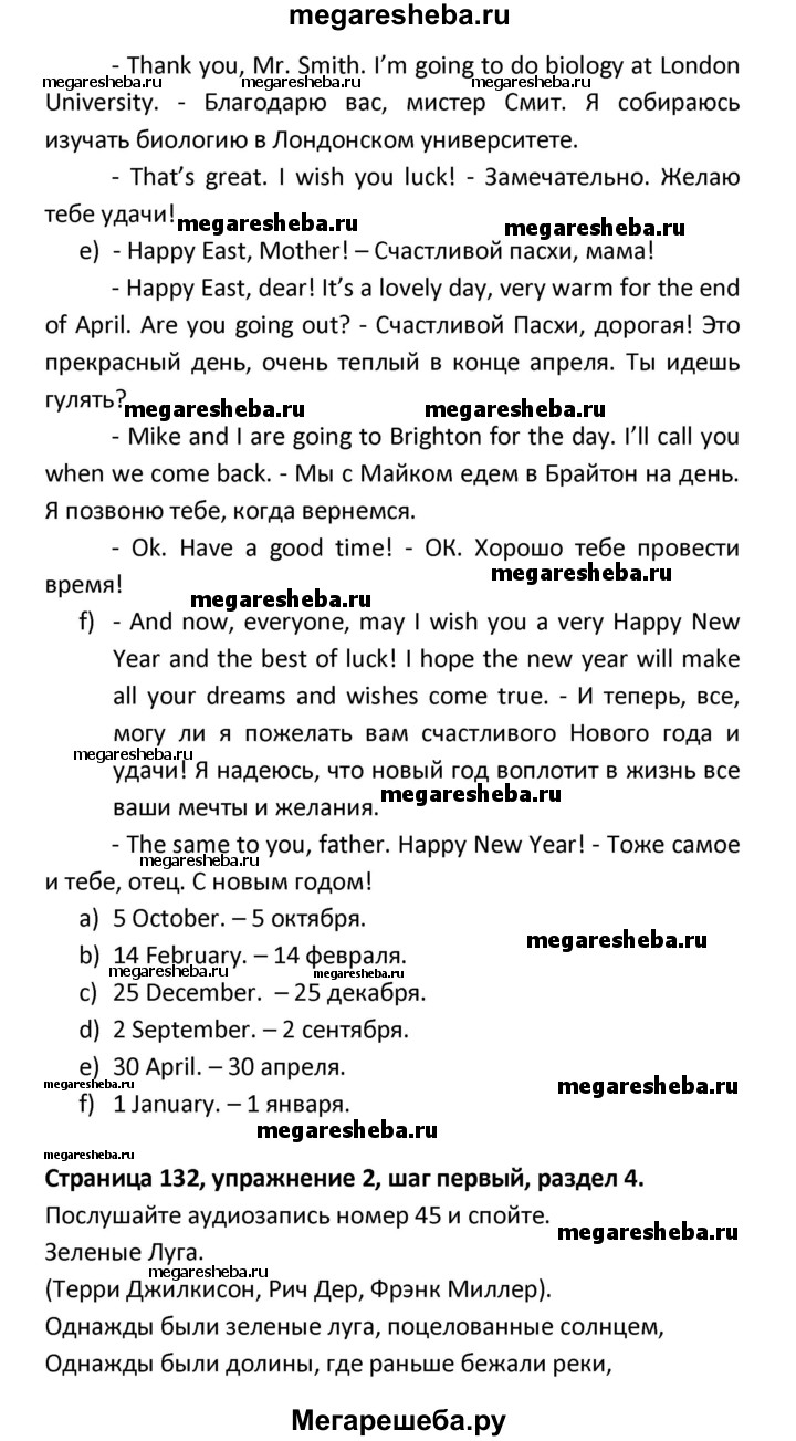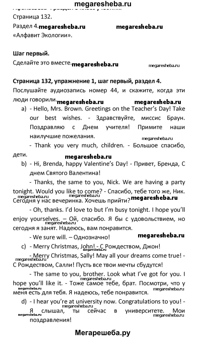 ГДЗ по английскому языку 8 класс Афанасьева новый курс (4-ый год обучения) решение к разделу: страница - 132