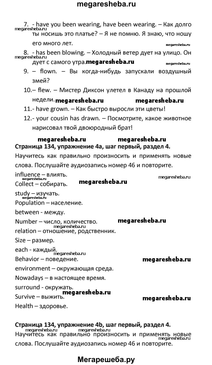 ГДЗ по английскому языку 8 класс Афанасьева новый курс (4-ый год обучения) решение к разделу: страница - 134