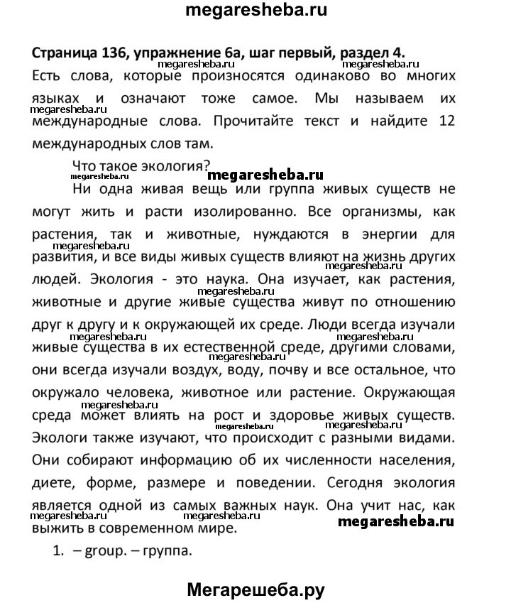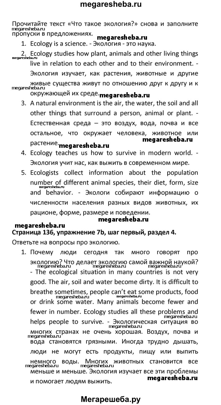 ГДЗ по английскому языку 8 класс Афанасьева новый курс (4-ый год обучения) решение к разделу: страница - 136