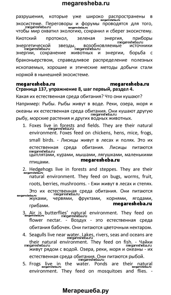 Подробный решебник (ГДЗ) по Английскому языку за 8 (восьмой) класс новый курс (4-ый год обучения) - готовый ответ решение к разделу: страница - 137. Авторы учебника: Афанасьева, Михеева. Издательство: Дрофа 2015.
