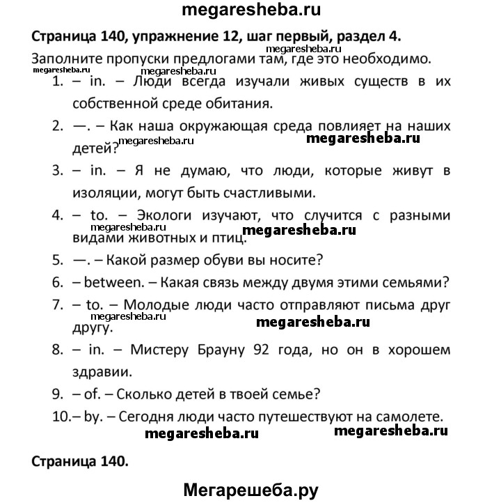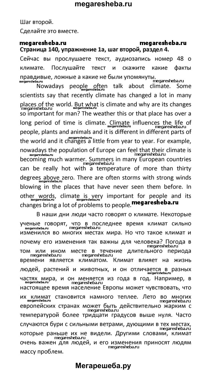 ГДЗ по английскому языку 8 класс Афанасьева новый курс (4-ый год обучения) решение к разделу: страница - 140