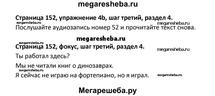 ГДЗ по английскому языку 8 класс Афанасьева новый курс (4-ый год обучения) решение к разделу: страница - 152