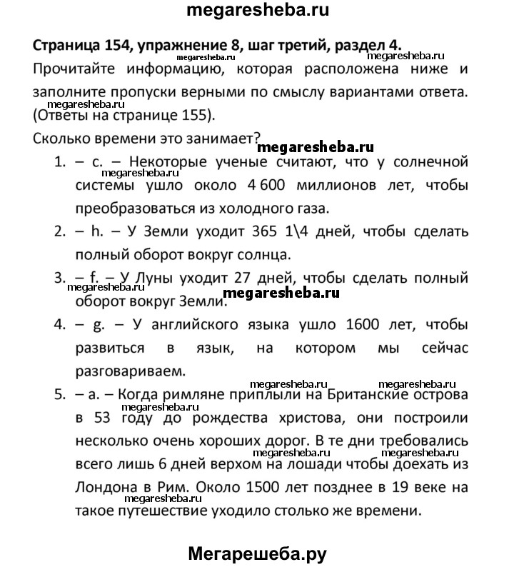 ГДЗ по английскому языку 8 класс Афанасьева новый курс (4-ый год обучения) решение к разделу: страница - 154