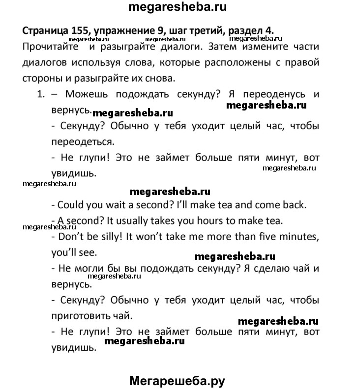 ГДЗ по английскому языку 8 класс Афанасьева новый курс (4-ый год обучения) решение к разделу: страница - 155