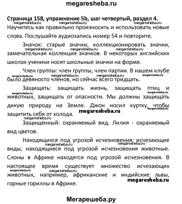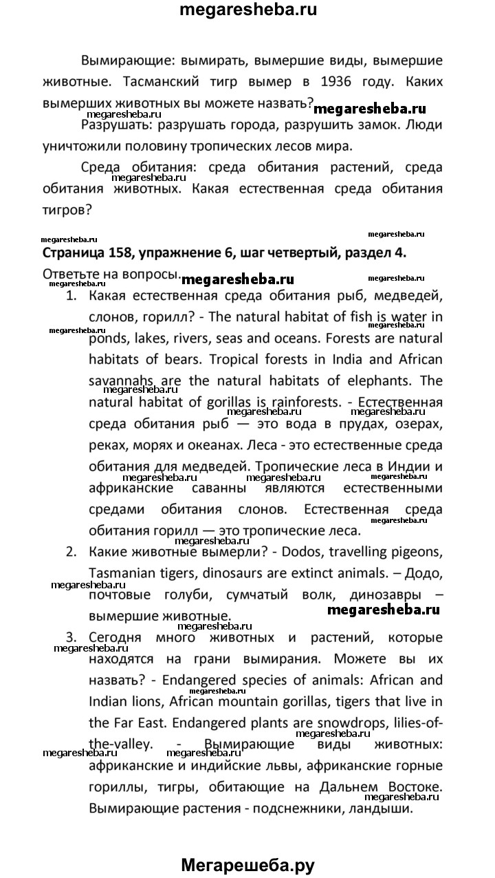 ГДЗ по английскому языку 8 класс Афанасьева новый курс (4-ый год обучения) решение к разделу: страница - 158
