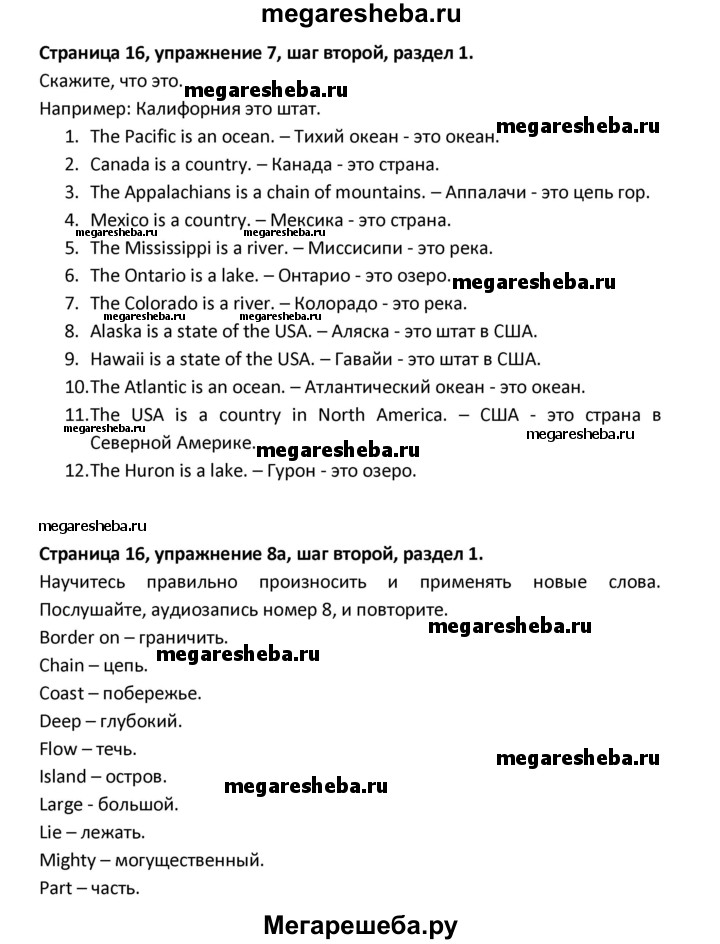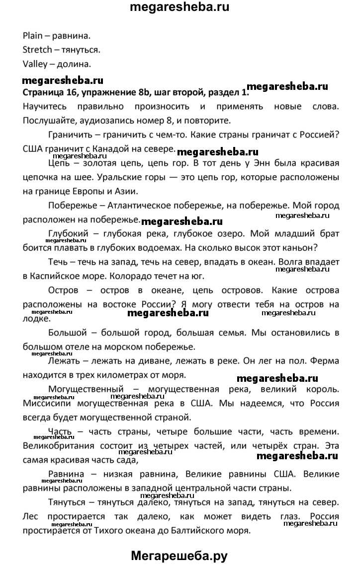 ГДЗ по английскому языку 8 класс Афанасьева новый курс (4-ый год обучения) решение к разделу: страница - 16