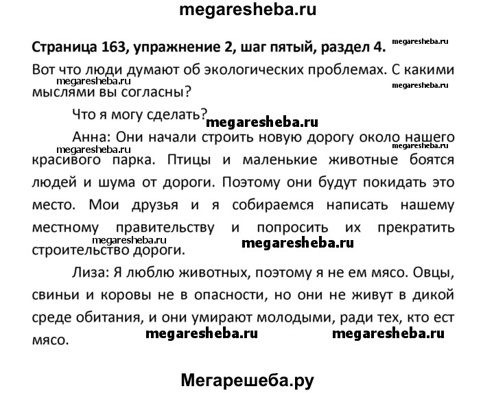 ГДЗ по английскому языку 8 класс Афанасьева новый курс (4-ый год обучения) решение к разделу: страница - 163