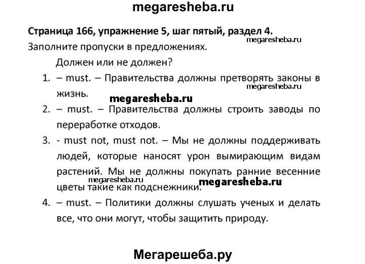 ГДЗ по английскому языку 8 класс Афанасьева новый курс (4-ый год обучения) решение к разделу: страница - 166