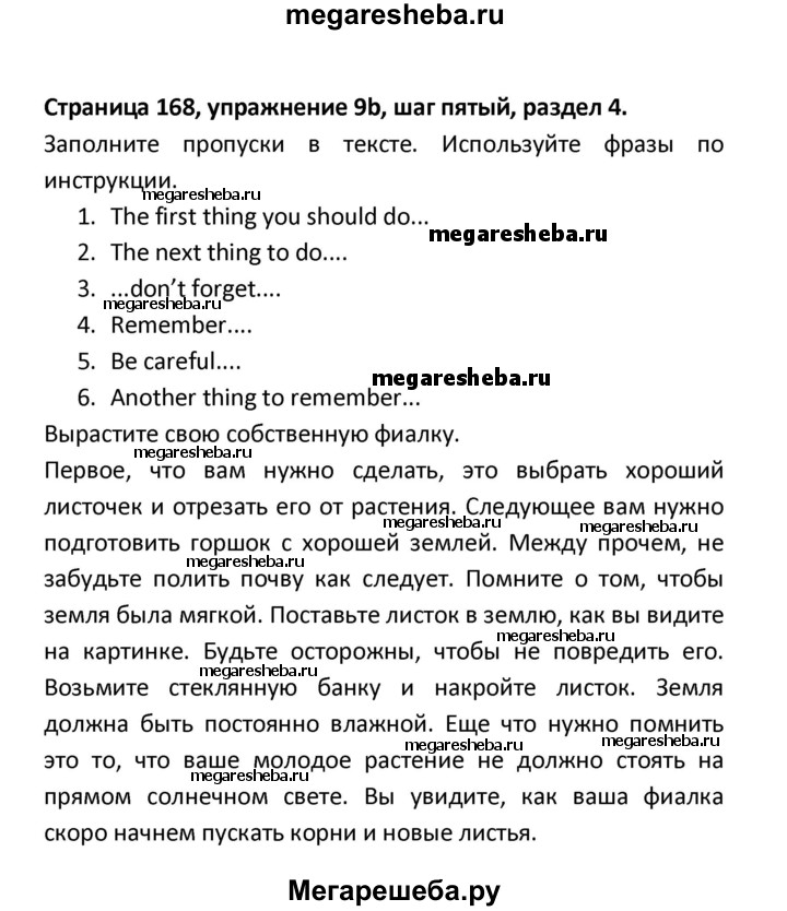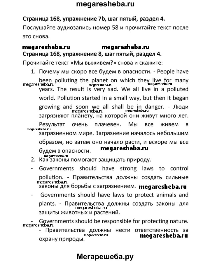 ГДЗ по английскому языку 8 класс Афанасьева новый курс (4-ый год обучения) решение к разделу: страница - 168