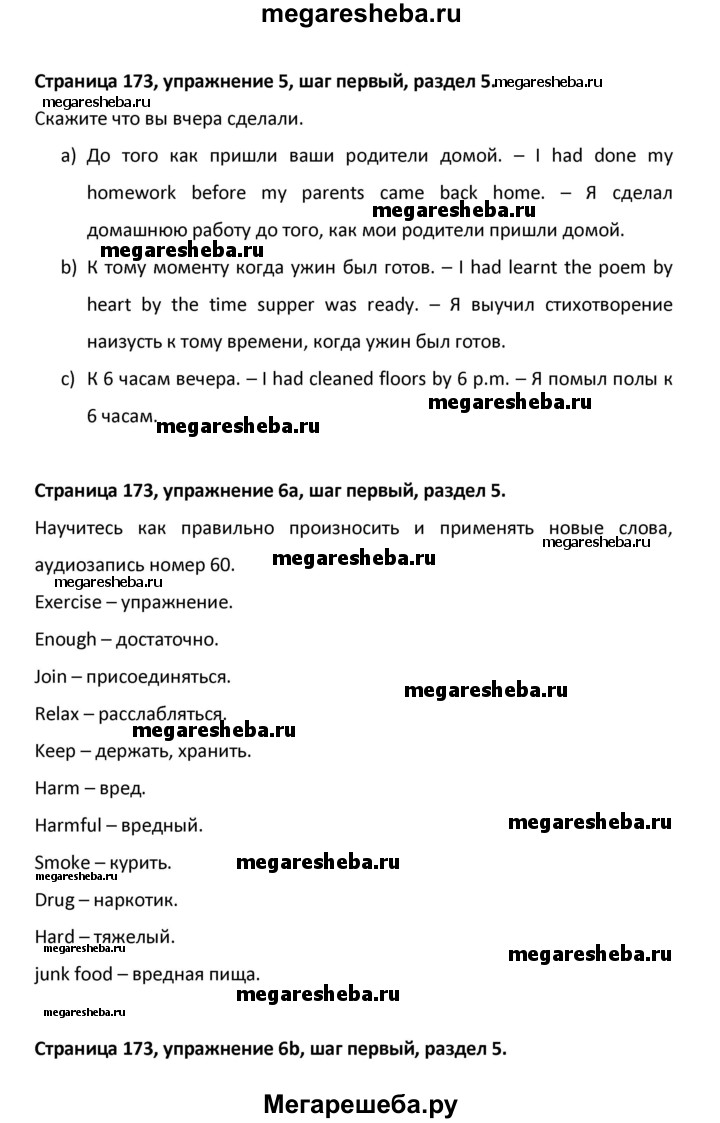ГДЗ по английскому языку 8 класс Афанасьева новый курс (4-ый год обучения) решение к разделу: страница - 173