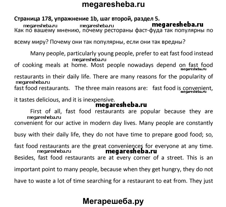 Подробный решебник (ГДЗ) по Английскому языку за 8 (восьмой) класс новый курс (4-ый год обучения) - готовый ответ решение к разделу: страница - 178. Авторы учебника: Афанасьева, Михеева. Издательство: Дрофа 2015.