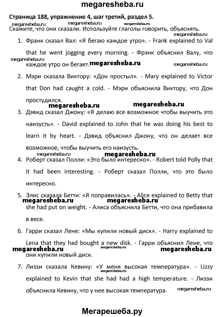 ГДЗ по английскому языку 8 класс Афанасьева новый курс (4-ый год обучения) решение к разделу: страница - 188