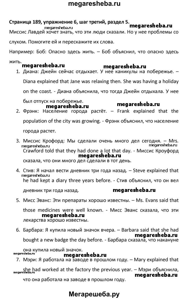 ГДЗ по английскому языку 8 класс Афанасьева новый курс (4-ый год обучения) решение к разделу: страница - 189
