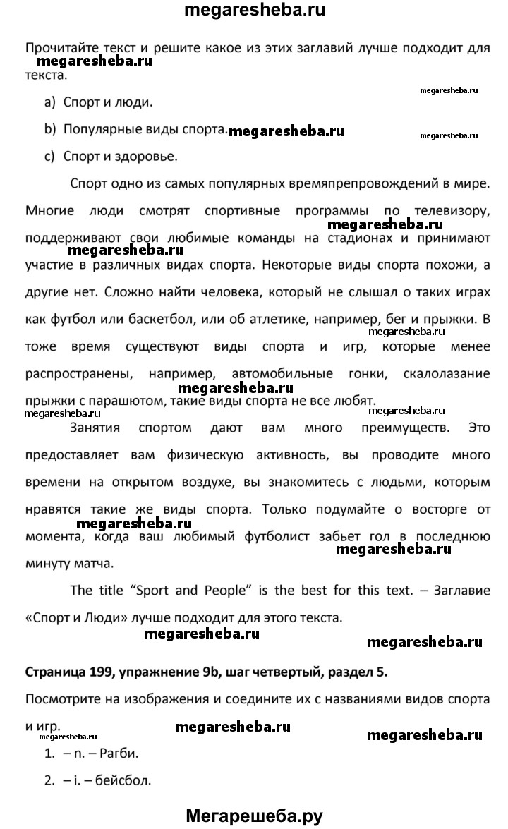 ГДЗ по английскому языку 8 класс Афанасьева новый курс (4-ый год обучения) решение к разделу: страница - 199
