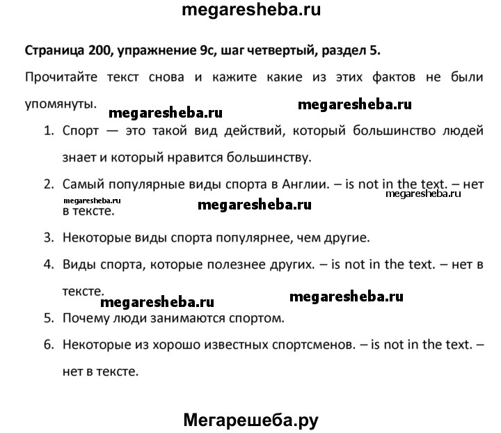 ГДЗ по английскому языку 8 класс Афанасьева новый курс (4-ый год обучения) решение к разделу: страница - 200
