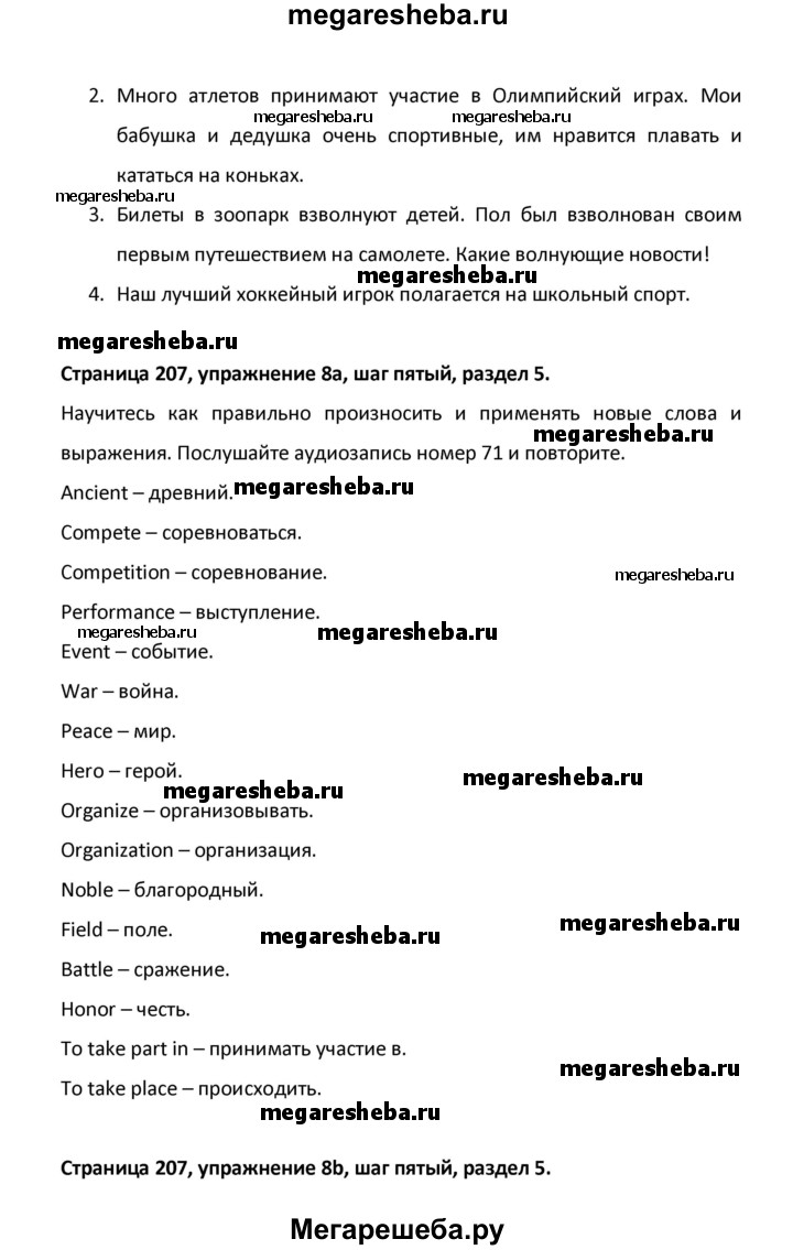ГДЗ по английскому языку 8 класс Афанасьева новый курс (4-ый год обучения) решение к разделу: страница - 207