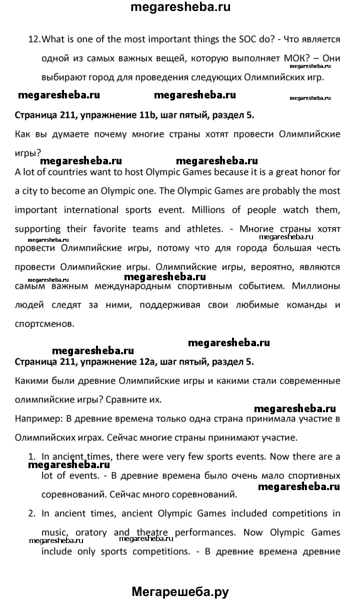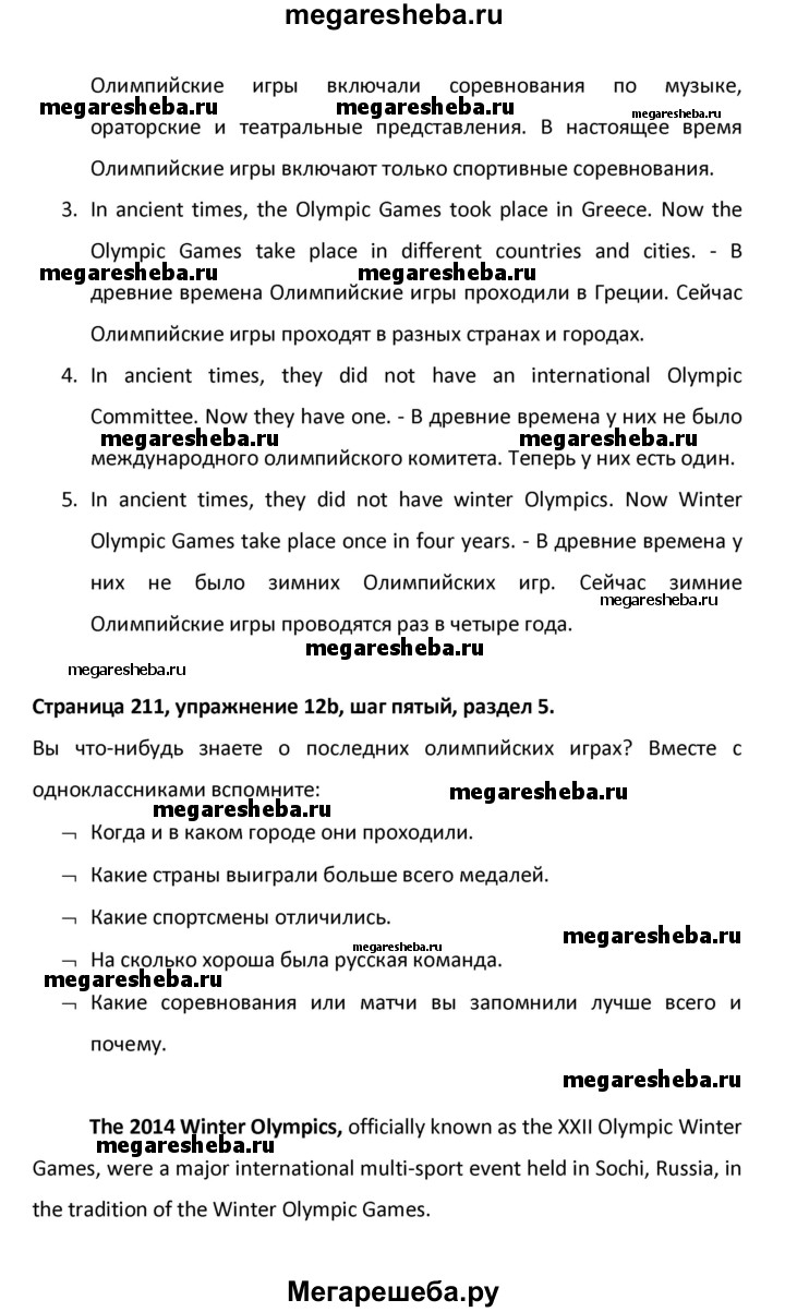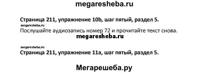 ГДЗ по английскому языку 8 класс Афанасьева новый курс (4-ый год обучения) решение к разделу: страница - 211