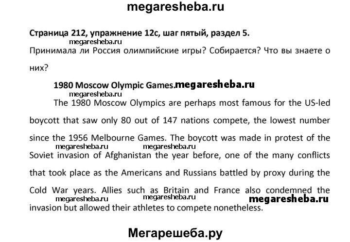 ГДЗ по английскому языку 8 класс Афанасьева новый курс (4-ый год обучения) решение к разделу: страница - 212