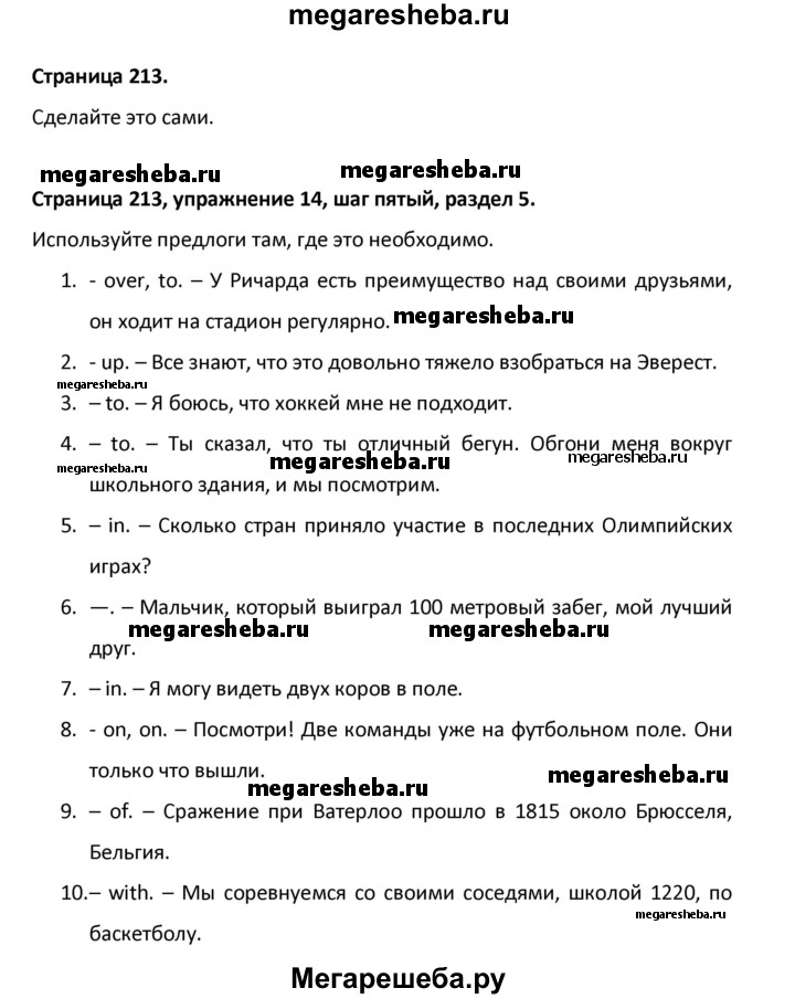 ГДЗ по английскому языку 8 класс Афанасьева новый курс (4-ый год обучения) решение к разделу: страница - 213