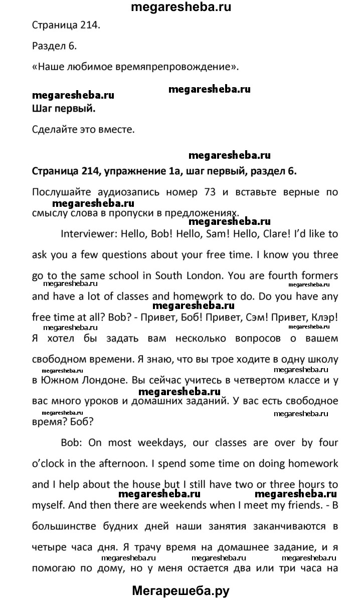 ГДЗ по английскому языку 8 класс Афанасьева новый курс (4-ый год обучения) решение к разделу: страница - 214