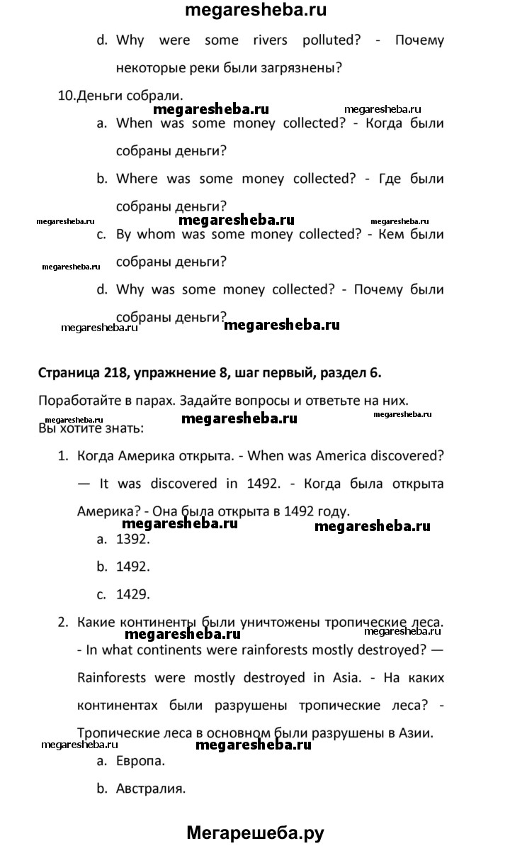 Подробный решебник (ГДЗ) по Английскому языку за 8 (восьмой) класс новый курс (4-ый год обучения) - готовый ответ решение к разделу: страница - 218. Авторы учебника: Афанасьева, Михеева. Издательство: Дрофа 2015.