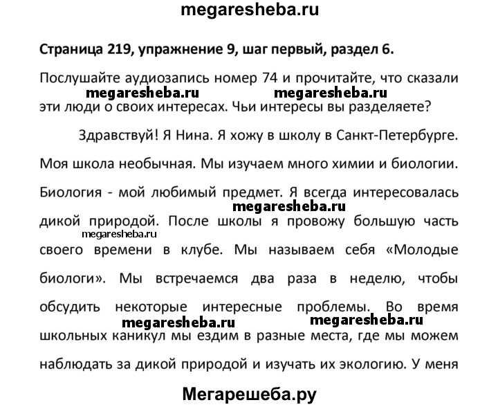 ГДЗ по английскому языку 8 класс Афанасьева новый курс (4-ый год обучения) решение к разделу: страница - 219