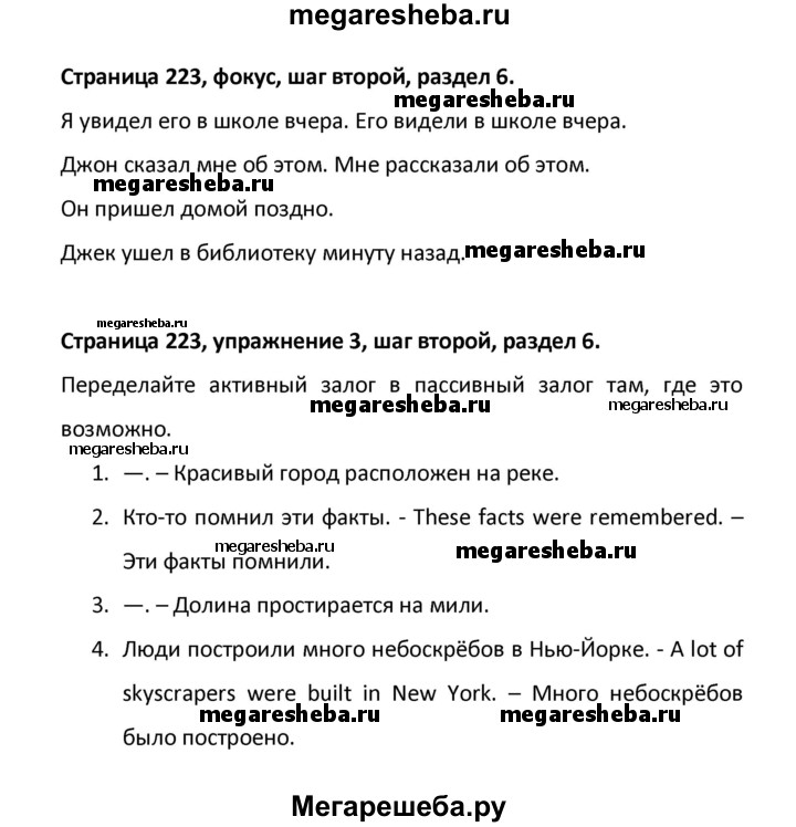 ГДЗ по английскому языку 8 класс Афанасьева новый курс (4-ый год обучения) решение к разделу: страница - 223