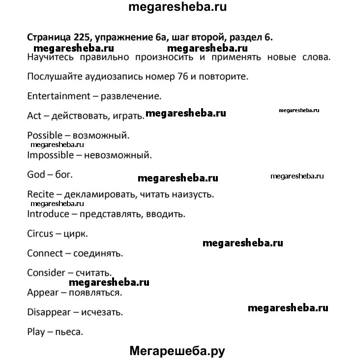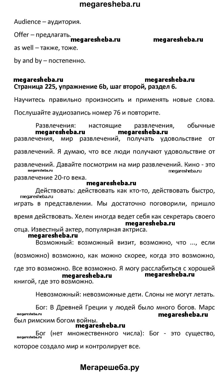 ГДЗ по английскому языку 8 класс Афанасьева новый курс (4-ый год обучения) решение к разделу: страница - 225