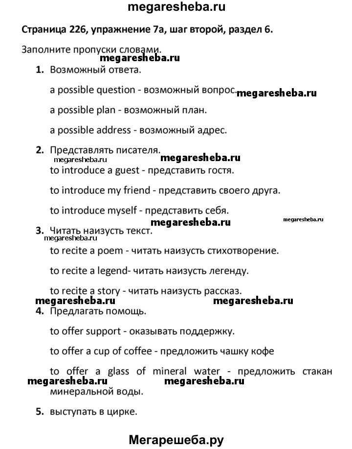 Подробный решебник (ГДЗ) по Английскому языку за 8 (восьмой) класс новый курс (4-ый год обучения) - готовый ответ решение к разделу: страница - 226. Авторы учебника: Афанасьева, Михеева. Издательство: Дрофа 2015.