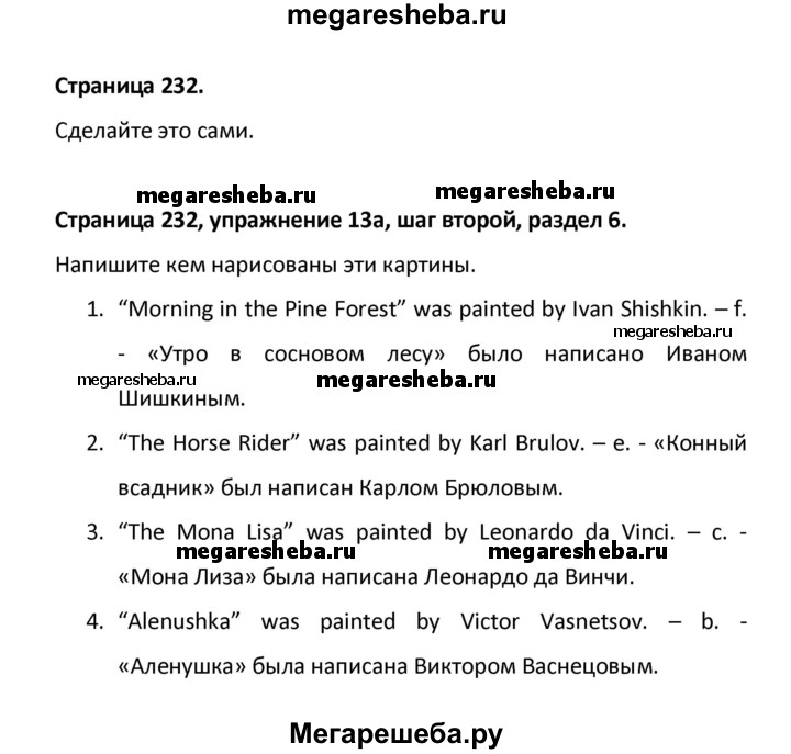 Подробный решебник (ГДЗ) по Английскому языку за 8 (восьмой) класс новый курс (4-ый год обучения) - готовый ответ решение к разделу: страница - 232. Авторы учебника: Афанасьева, Михеева. Издательство: Дрофа 2015.