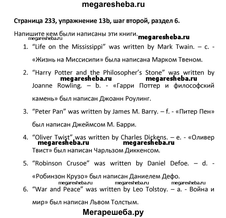 Подробный решебник (ГДЗ) по Английскому языку за 8 (восьмой) класс новый курс (4-ый год обучения) - готовый ответ решение к разделу: страница - 233. Авторы учебника: Афанасьева, Михеева. Издательство: Дрофа 2015.