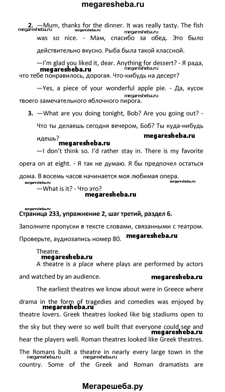 ГДЗ по английскому языку 8 класс Афанасьева новый курс (4-ый год обучения) решение к разделу: страница - 233