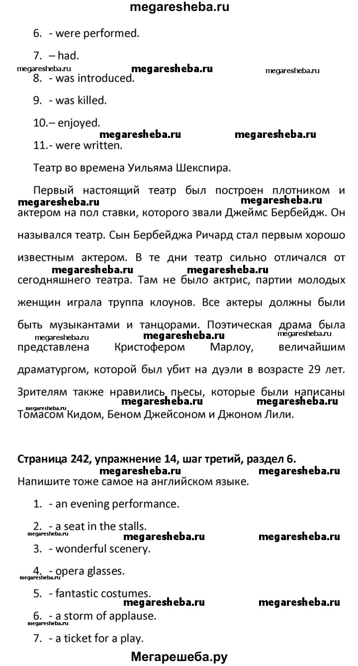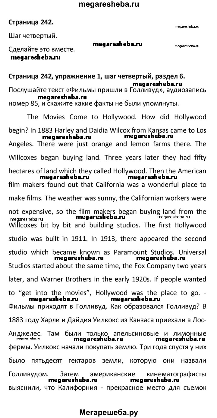 ГДЗ по английскому языку 8 класс Афанасьева новый курс (4-ый год обучения) решение к разделу: страница - 242