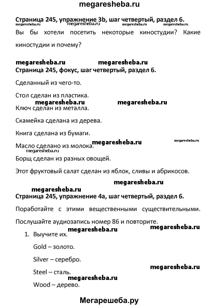 ГДЗ по английскому языку 8 класс Афанасьева новый курс (4-ый год обучения) решение к разделу: страница - 245