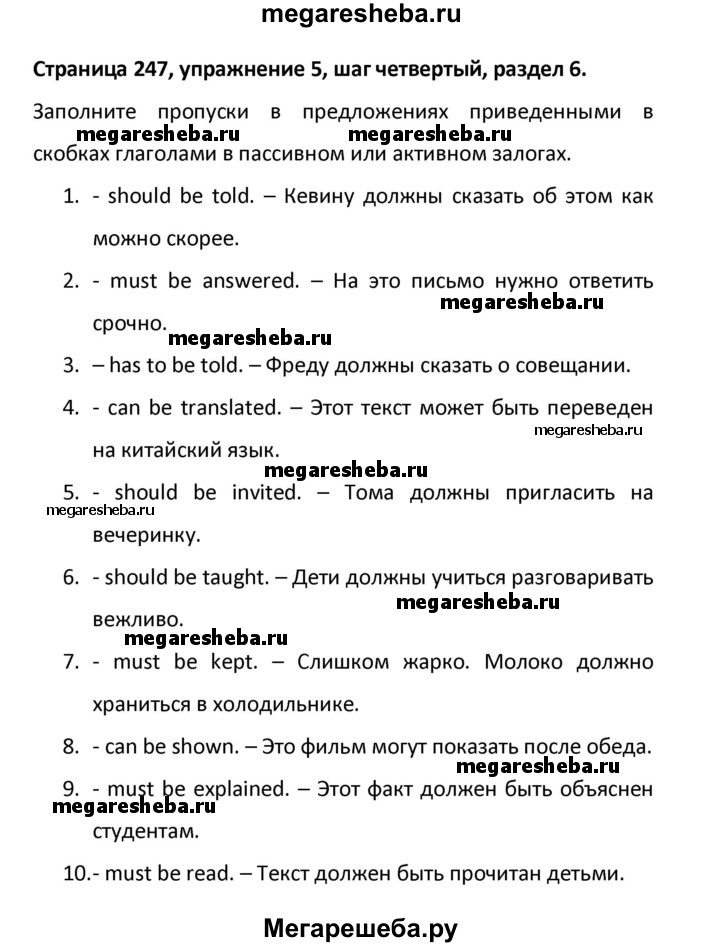 ГДЗ по английскому языку 8 класс Афанасьева новый курс (4-ый год обучения) решение к разделу: страница - 247