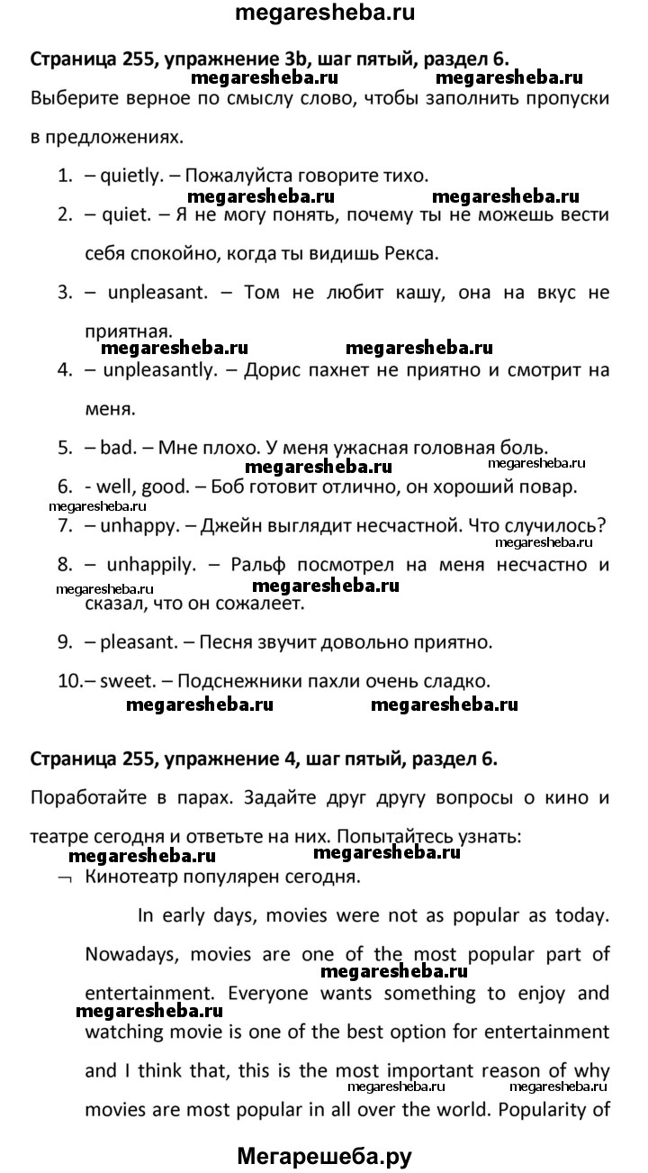 ГДЗ по английскому языку 8 класс Афанасьева новый курс (4-ый год обучения) решение к разделу: страница - 255