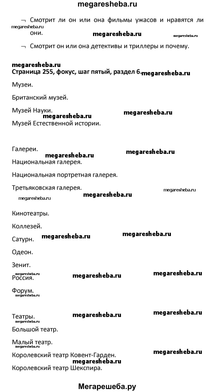 Подробный решебник (ГДЗ) по Английскому языку за 8 (восьмой) класс новый курс (4-ый год обучения) - готовый ответ решение к разделу: страница - 255. Авторы учебника: Афанасьева, Михеева. Издательство: Дрофа 2015.
