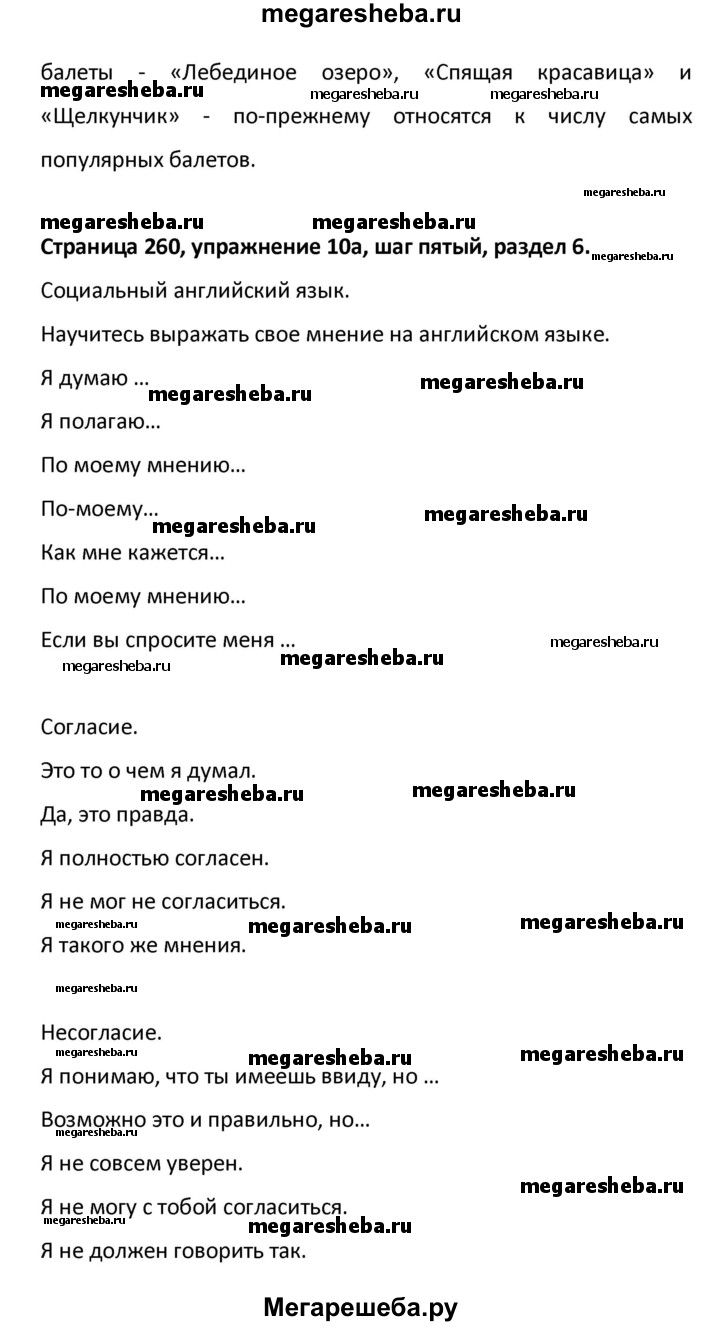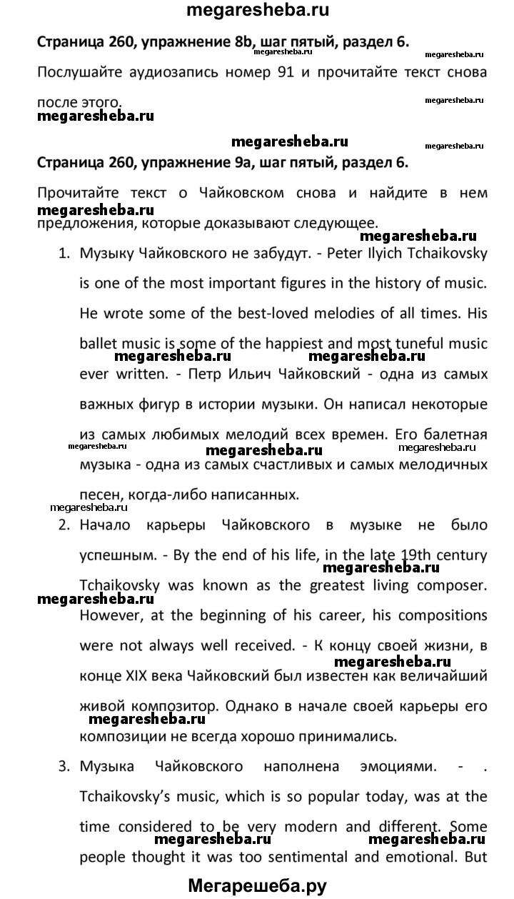 Подробный решебник (ГДЗ) по Английскому языку за 8 (восьмой) класс новый курс (4-ый год обучения) - готовый ответ решение к разделу: страница - 260. Авторы учебника: Афанасьева, Михеева. Издательство: Дрофа 2015.