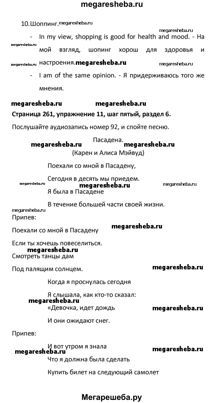 ГДЗ по английскому языку 8 класс Афанасьева новый курс (4-ый год обучения) решение к разделу: страница - 261