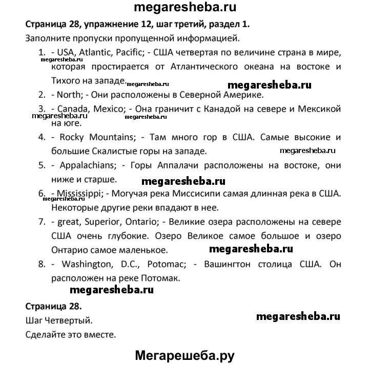 ГДЗ по английскому языку 8 класс Афанасьева новый курс (4-ый год обучения) решение к разделу: страница - 28