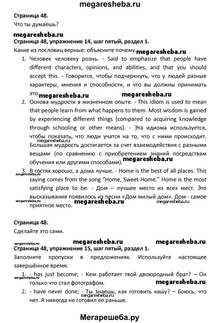 ГДЗ по английскому языку 8 класс Афанасьева новый курс (4-ый год обучения) решение к разделу: страница - 48