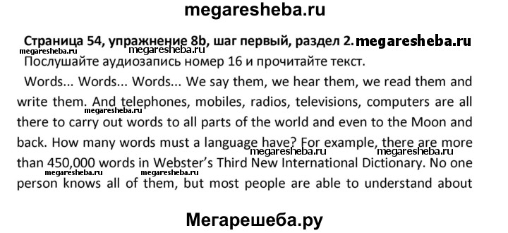 Подробный решебник (ГДЗ) по Английскому языку за 8 (восьмой) класс новый курс (4-ый год обучения) - готовый ответ решение к разделу: страница - 54. Авторы учебника: Афанасьева, Михеева. Издательство: Дрофа 2015.
