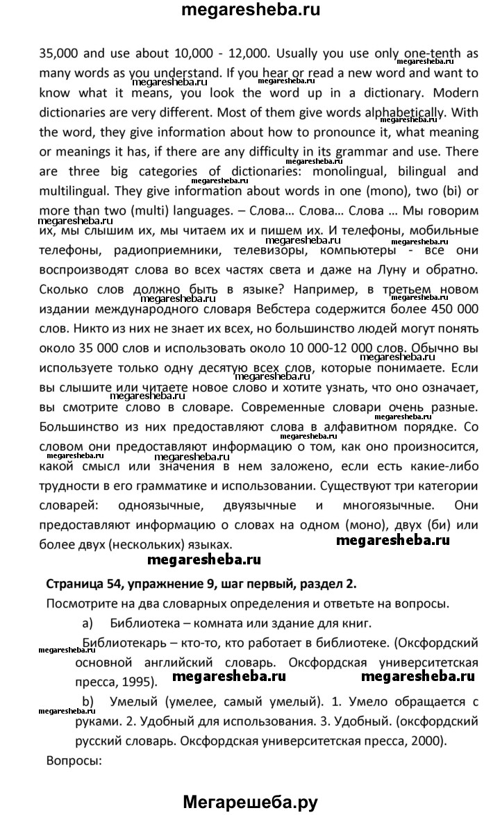 ГДЗ по английскому языку 8 класс Афанасьева новый курс (4-ый год обучения) решение к разделу: страница - 54