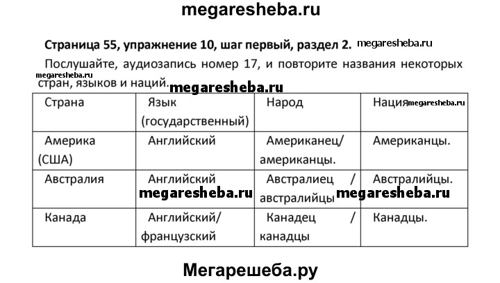 ГДЗ по английскому языку 8 класс Афанасьева новый курс (4-ый год обучения) решение к разделу: страница - 55