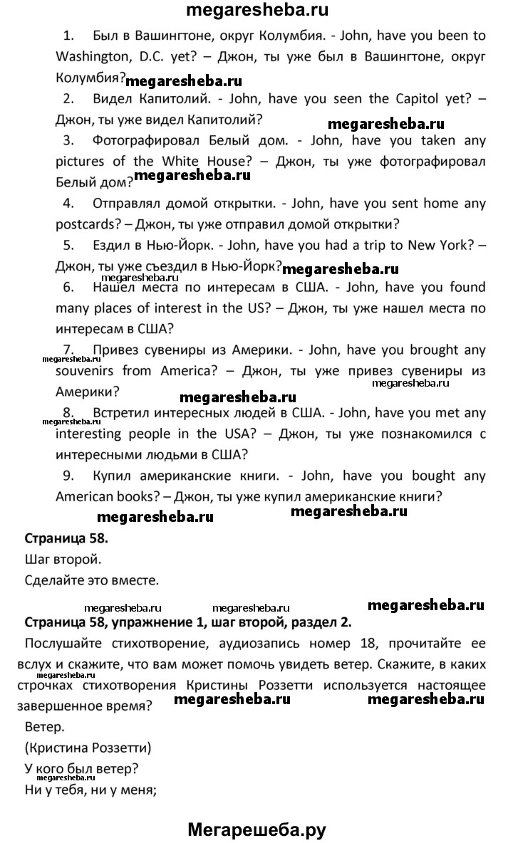 ГДЗ по английскому языку 8 класс Афанасьева новый курс (4-ый год обучения) решение к разделу: страница - 58