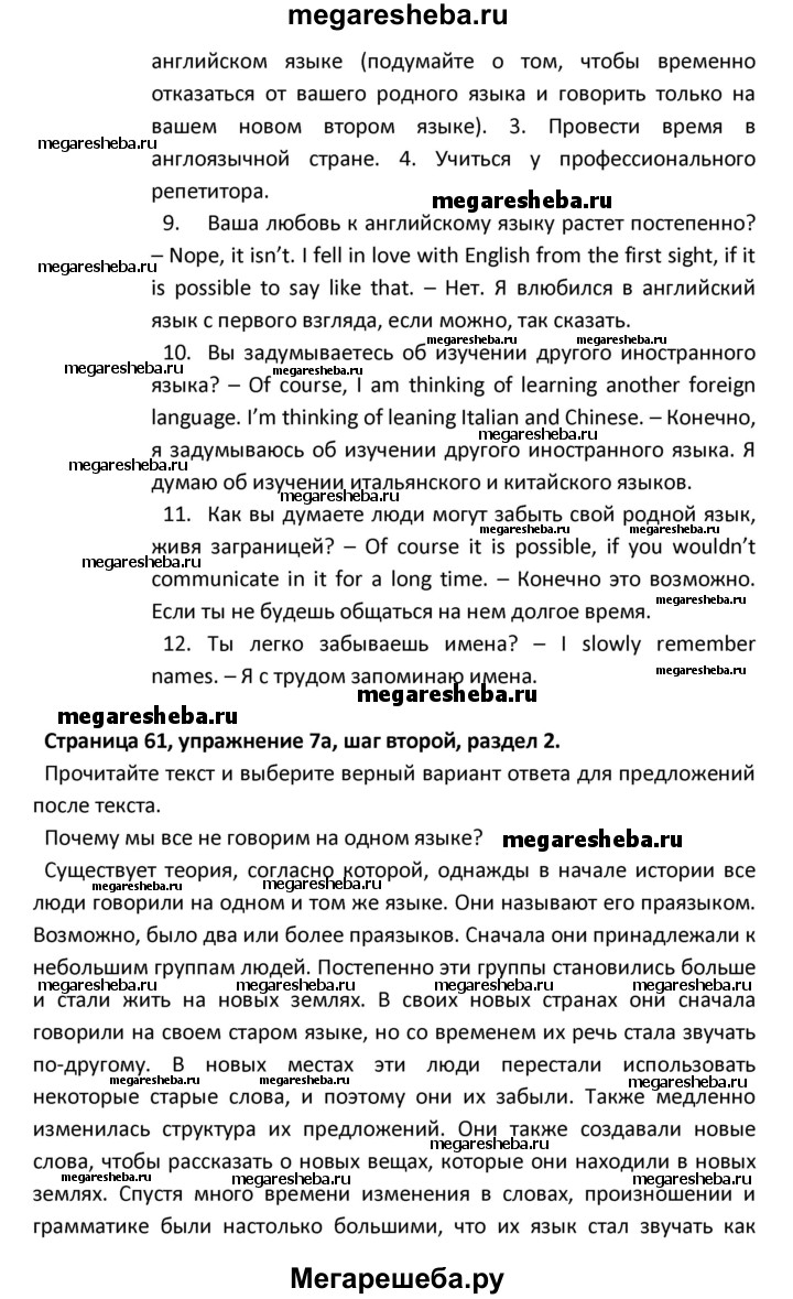 Подробный решебник (ГДЗ) по Английскому языку за 8 (восьмой) класс новый курс (4-ый год обучения) - готовый ответ решение к разделу: страница - 61. Авторы учебника: Афанасьева, Михеева. Издательство: Дрофа 2015.