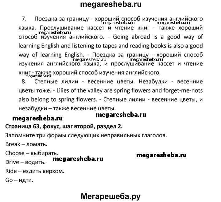 Подробный решебник (ГДЗ) по Английскому языку за 8 (восьмой) класс новый курс (4-ый год обучения) - готовый ответ решение к разделу: страница - 63. Авторы учебника: Афанасьева, Михеева. Издательство: Дрофа 2015.