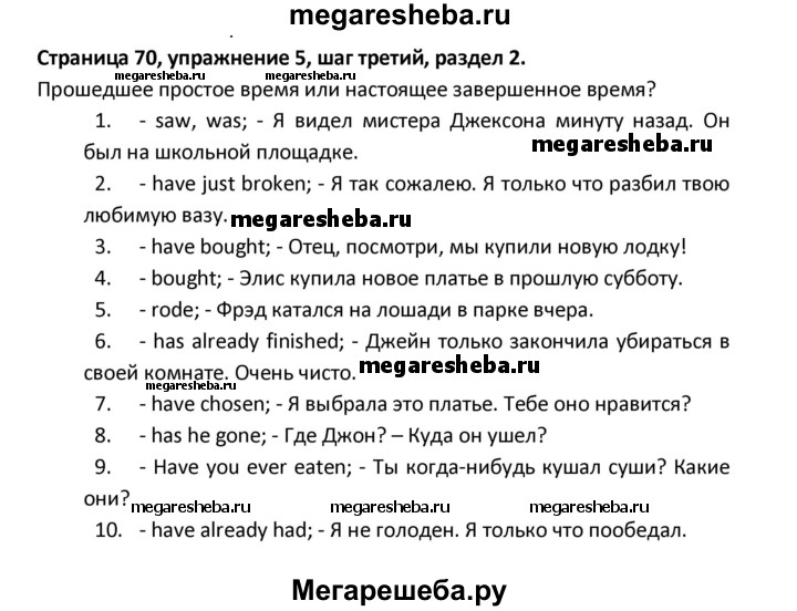 Подробный решебник (ГДЗ) по Английскому языку за 8 (восьмой) класс новый курс (4-ый год обучения) - готовый ответ решение к разделу: страница - 70. Авторы учебника: Афанасьева, Михеева. Издательство: Дрофа 2015.